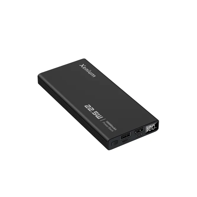 Если планируете носить пауэрбанк в кармане или рюкзаке, лучше выбрать компактный и лёгкий вариант. Например, размеры нового портативного аккумулятора Xenium P2210 — 147×66×15 мм, а вес всего 254 г, так что вы даже его не почувствуете. У новинки прочный металлический корпус, и, помимо стильного внешнего вида, большая ёмкость — 10 000 мАч, быстрая зарядка и высокая мощность, которая составляет 22,5 Вт. Этого хватит, чтобы поддерживать заряд сразу нескольких мобильных устройств: подзарядить смартфон или беспроводные наушники, планшет или камеру.