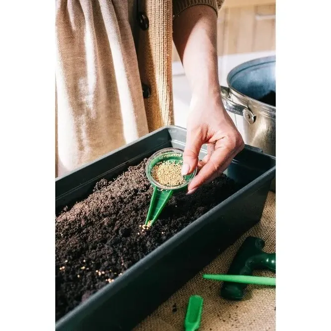 Для садовода-любителя весна не будет полной без посадки овощей, зелени и цветов-однолетников. Но многие семена настолько мелкие, что их не то что посадить, а разглядеть в пакете сложно. На Руси в посевную набирали плевальщиков, которые «расплевывали» семена репы по грядкам, но нам повезло больше. Сейчас есть ручные сеялки, выглядят как небольшой конус с дозатором, который помогает равномерно распределяет посадочный материал. Нужно просто заполнить дозатор семенами и отрегулировать выпускное отверстие под нужный размер семечка.