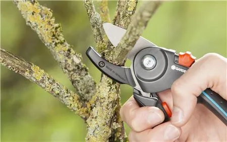 Рубящий или контактный секатор для сухих старых, одревесневших веток (до 3 см). У него 1 рабочий нож, который упирается в прочную широкую пластину – наковаленку, часто с ребристой поверхностью, чтобы предотвратить скольжение ветви. Он не подходит для живых стеблей и веток, так как не даёт гладкого среза.