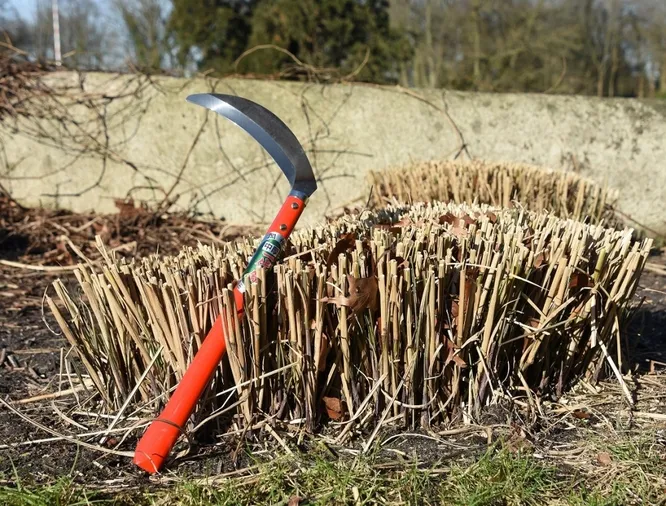 Очень удобная вещь, которая в разы облегчает весеннюю уборку клумб, миксбордеров и цветников. Позволяет легко и быстро срезать большие участки прошлогодних трав и стеблей многолетних растений, которые остались на зиму. Инструмент может и выглядит немного устрашающе, но пользоваться им легко, не сложнее и не опаснее, чем кухонным ножом. С обрезкой высокой травы летом тоже хорошо справляется.