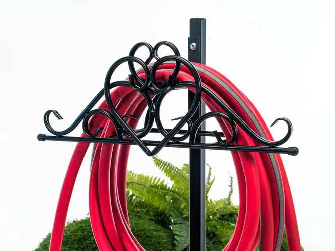 Металлический кронштейн решит проблему безопасного и компактного хранения шланга, а заодно украсит участок и сад. Есть варианты с креплением на стену дома или на отдельной стойке. А вот оставлять шланг на газоне надолго нельзя. Сразу появятся проплешины.