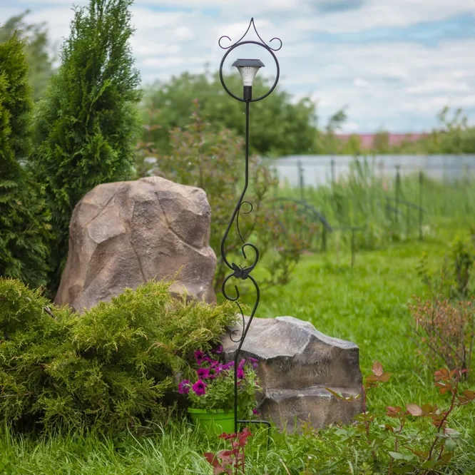 Прочная металлическая шпалера станет надежной опорой для плетистых роз, винограда, клематисов и других вьющихся растений, а вечером превратится ещё и в садовый светильник, так как в комплект входит светодиодный фонарик.