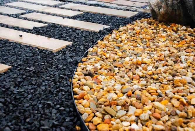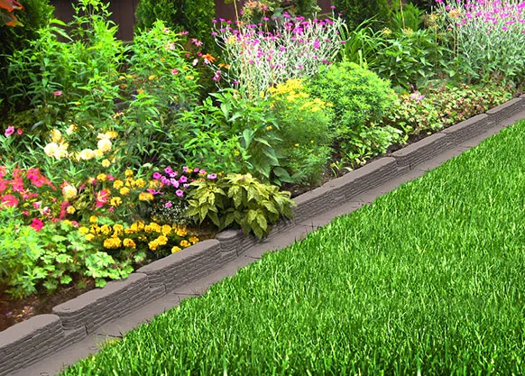 Такой бордюр удобно использовать для ограничения клумб, зонирования цветников, газонов, грядок и дорожек. Пластик гибкий, поэтому можно придать бордюру любую форму, монтируется легко, можно обойтись только киянкой.