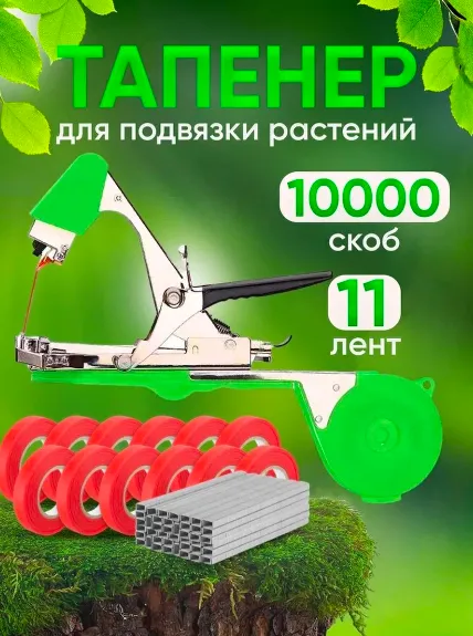Садовый степлер или тапенер нужен для подвязки большого количества растений (огурцов, помидоров, кабачков, перца и т.д.), так что пригодится для владельцев теплиц. Вы нажимаете на степлер, и он оборачивает лентой опору, закрепляет её скобой и обрезает ленту. Процесс подвязки ускоряется как минимум в 5 раз, а растения при этом не травмируются.