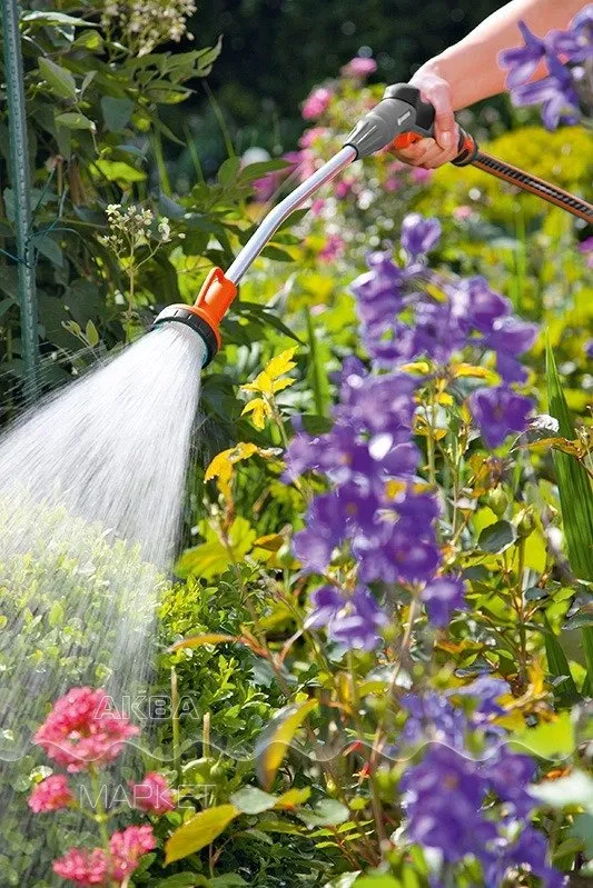 Многофункциональная штанга-распылитель очень удобна для полива под корень, орошения растений в подвесных кашпо и в других труднодоступных местах. Оснащена поворотной насадкой и имеет два режима: мягкий душ и жесткая струя.