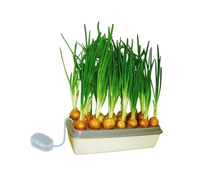 Гидропонная установка «Луковое счастье» предназначена для выращивания зеленого лука в домашних условиях прямо на подоконнике. Процесс проращивания не займёт много времени и не требует особых усилий: просто включаете устройство, наливаете воду в емкость и кладете луковицы над поверхностью воды. Через 2 недели прорастет 30-40 сантиметров сочного зеленого лука. За 1 месяц стабильно прорастает 1-1,5 кг.