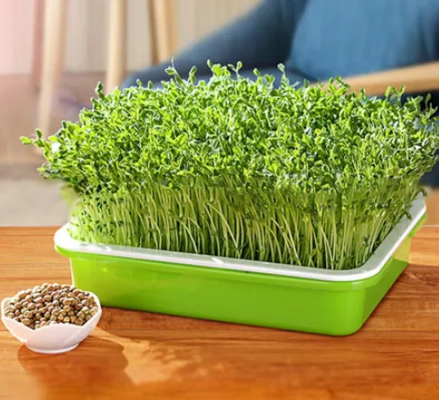 Отличный бюджетный вариант для тех, кто мечтает о собственном мини-огороде. С помощью этого прибора можно выращивать большое количество микрозелени за один раз, не используя землю и удобрения. Проращиватель состоит из двух частей: в нижний поддон заливается вода, а в верхний сетчатый засыпаются семена нужной культуры.