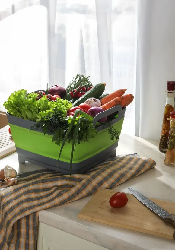 Хорошая альтернатива ведрам и тазикам для мытья посуды, фруктов и овощей, стирки белья и других хозяйственных целей. В сложенном виде почти не занимает места, можно хранить, повесив на крючок. Быстро и легко раскладывается, удобна для путешествий.