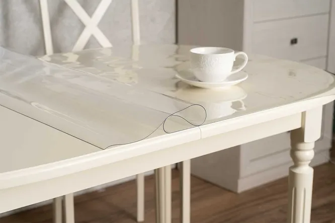 Это современное и довольно удобное решение для защиты деревянных или пластиковых поверхностей от царапин, разводов, влаги и всевозможных повреждений. Накрывать можно всё: от столешниц и уличной мебели до холодильников, стиральных машин и подоконников (где, к примеру, растёт рассада). Скатерть можно подрезать под любой размер.