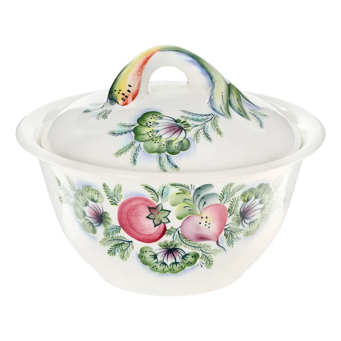 Если мы вспомнили про квас, то и, непременно, про окрошку. Красиво подавать её на стол нужно в окрошнице, с крышкой, которая защитит от насекомых, если вы собрались обедать на улице.