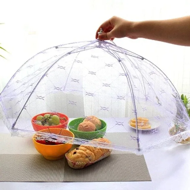 Чтобы не накрывать блюда с фруктами полотенцем от пыли и насекомых, пригодится парочка таких сеток. Выбирайте с вместительным куполом, чтобы под зонтиком могли поместиться сразу несколько тарелок. И лучше складные варианты, – их удобнее хранить. Купить сетки можно на любом маркетплейсе.