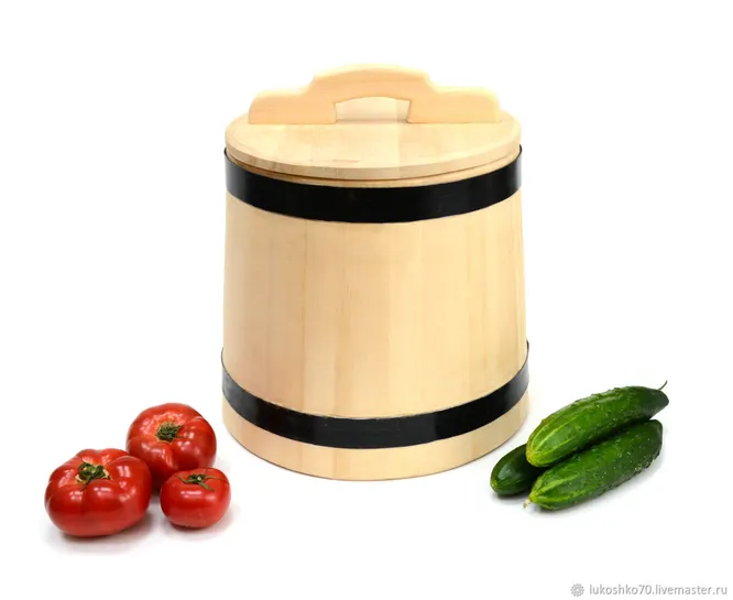Если любите заниматься огородом и выращивать свои овощи на грядках, вам, конечно, пригодится бочонок для солений, в котором можно солить овощи и грибы или квасить капусту. Кадки из кедра создаются без применения клея, поэтому полностью безопасны и идеально подойдут для питьевой воды или домашнего кваса.