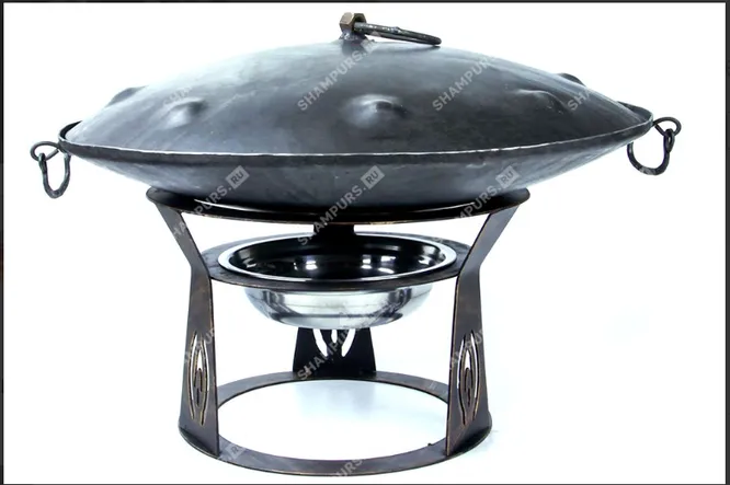 Садж — Мармит – это круглый поднос для красивой подачи шашлыка на стол, который поможет дольше сохранить блюдо горячим. Саджи бывают из нержавейки, чугуна, с тефлоновым и гранитным покрытием, с подогревом и без. Стоимость сильно зависит от размеров самой сковороды и материалов, из которых она изготовлена. Лучше всего брать садж с крышкой и подогревом, на углях. В этом случае шашлыки долго останутся горячими и сочными, угли по мере остывания можно менять, а можно заменить чайными свечами. Если же мясо оказалось внутри не прожаренным, оно само дойдет под крышкой до полной готовности за 10-15 минут.