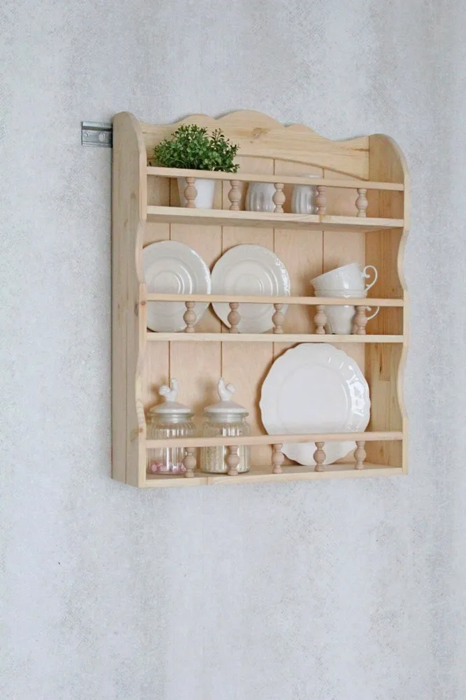 Если вы любите стиль Кантри или Прованс, то открытые деревянные полочки-витрины сразу создадут уют на вашей кухне, их можно повесить и на открытой террасе, чтобы расставить красивую посуду, свечи или растения в кашпо.