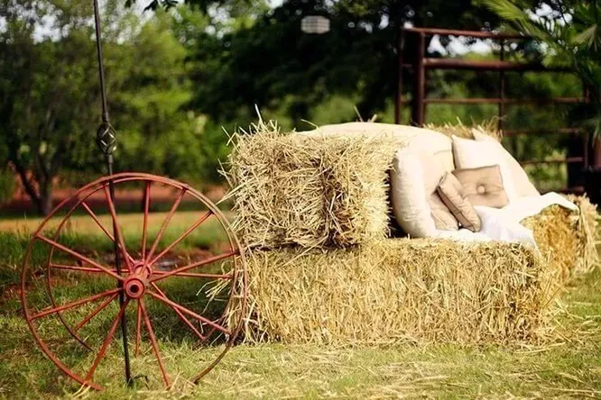 Собираетесь устроить большую осеннюю вечеринку на открытом воздухе, но понимаете, что у вас мало мест, где можно присесть? Используйте декоративные соломенные тюки, вокруг которых можно сложить декоративные тыквы, бросить пледы или расставить несколько фонарей. Сено в тюках специально отобрано для декора, оно чистое, ровного золотистого цвета, в нём отсутствует мусор, пыль, плесень или грибок, так что можно спокойно сидеть, не боясь испачкаться.