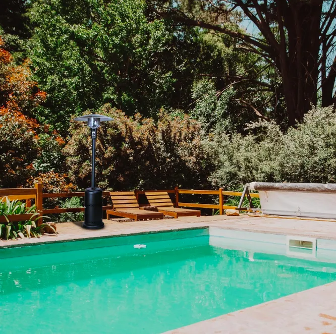 Если вечером не просто прохладно, а по-настоящему холодно, можно, конечно, надеть теплую куртку или укрыться пледом, но есть и более надежный вариант – уличный обогреватель, который ставят на открытую террасу, в беседку, патио или в зону отдыха. Газовый уличный обогреватель можно использовать в любую погоду. У большинства есть возможность регулировки мощности. В зависимости от модели обогревать они могут разную площадь, тот, что на фото, рассчитан на площадь 19 кв м. .