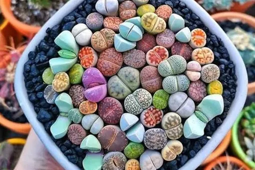 На первый взгляд их можно спутать с галькой или декоративным гравием. Их поверхность бывает гладкой, неровной или пятнистой, а цвета идеально вписываются в фон – серые, бежевые, коричневые и даже оттенки зеленого. Благодаря такому внешнему виду они отлично «маскируются» на подоконниках и полках, притворяясь обычными камушками. Именно это позволяет на несколько недель забыть об их существовании... а они все равно будут продолжать расти.