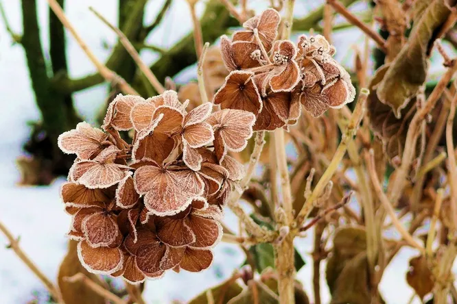 Сухие соцветия гортензий могут украшать сад на протяжении всего зимнего периода. Но в некоторых случаях их стоит обрезать.