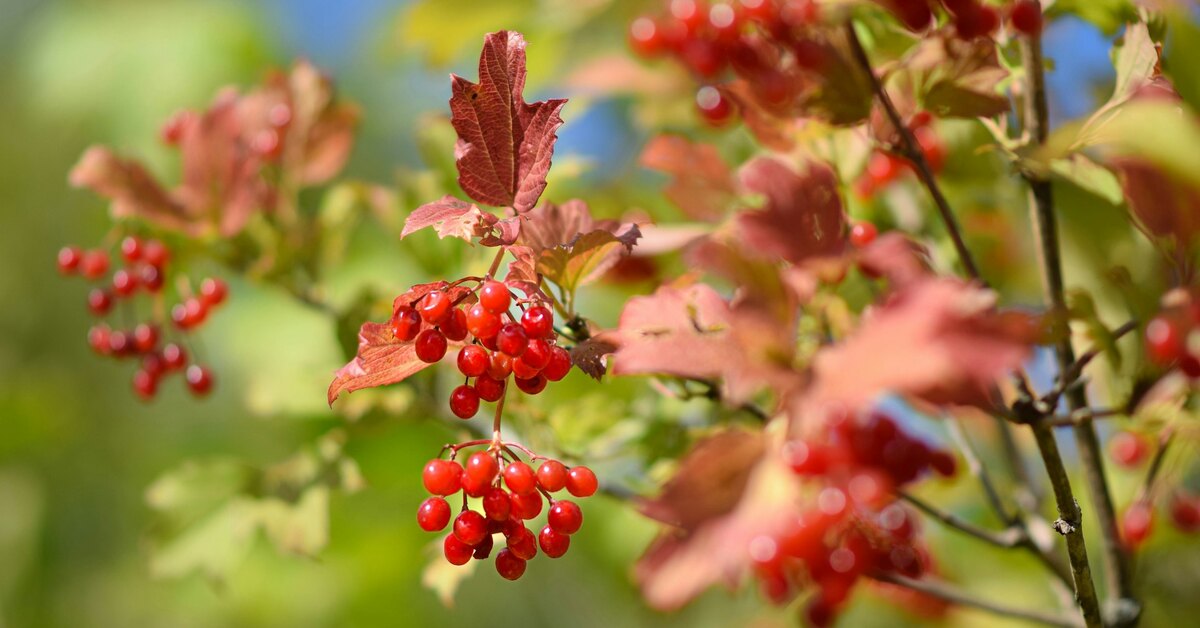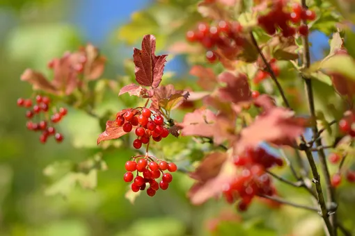 Куст калины будет украшением участка практически круглый год. Специалисты советуют присмотреться к сортам Закат, Таёжные рубины, Зарница, Шукшинская. Весной растение радует глаз своеобразной листвой и цветением, осенью — пурпуром листьев, а зимой — яркими ягодами.