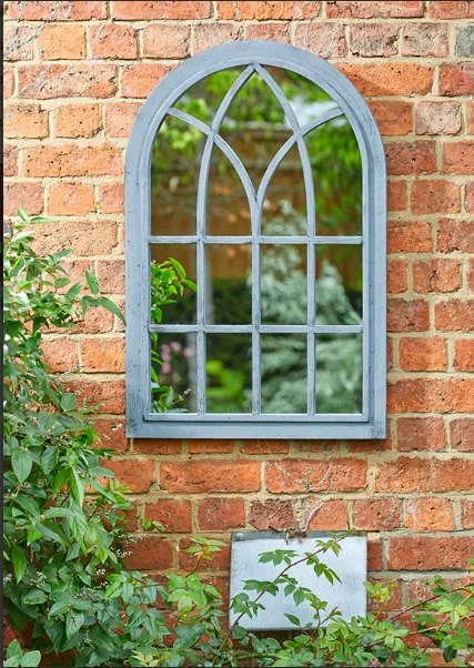 Чтобы декорировать пустую стену дома либо скрыть какие-то дефекты, в сад можно повесить зеркало. Выглядит это очень эффектно, а ваш сад будет казаться в два раза больше! Такое арочное зеркало в викторианском стиле станет окном в другую эпоху. Зеркала выполняются из высококачественных материалов, поэтому его можно без опасений размещать на улице – выдержит любые погодные явления.