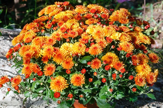 Независимо от того, выращиваете ли вы хризантемы в саду или сажаете в контейнеры, их красочные цветы незаменимы в ярком осеннем декоре. При правильном уходе, включающем регулярный полив и частое обрезание увядших цветков, хризантемы могут продолжать цвести в контейнерах на протяжении многих недель или даже месяцев. Однако вечно так жить они не смогут — как только растения начинают выглядеть уставшими и увядшими, рекомендуется выбросить их и высадить новые.