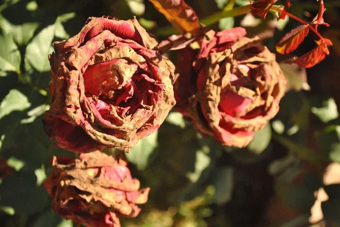 В конце сезона мы должны еще позаботиться о защите кустов роз от мороза. В регионах, где зимой температура регулярно опускается ниже -15 °C, рекомендуется насыпать холмик из рыхлой садовой земли вокруг основания куста на высоту около 20 см и использовать агроткань.