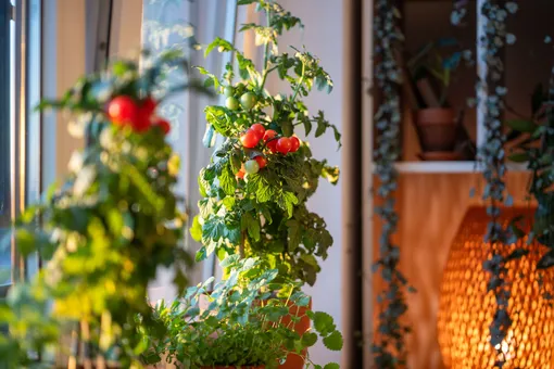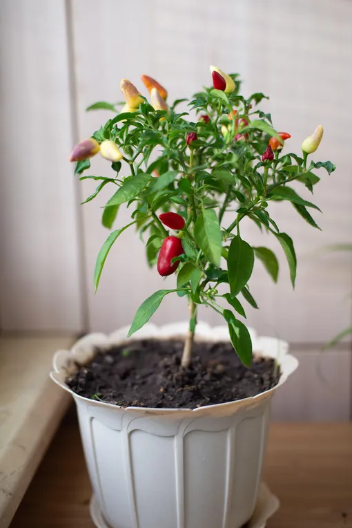 То же самое касалось и томатов: для выращивания в квартире стоило выбирать мелкоплодные сорта наподобие «Виноградного» или «Черри». А вот перец обычно получалось вырастить только жгучий — он был менее капризным и не таким высоким, как болгарский.