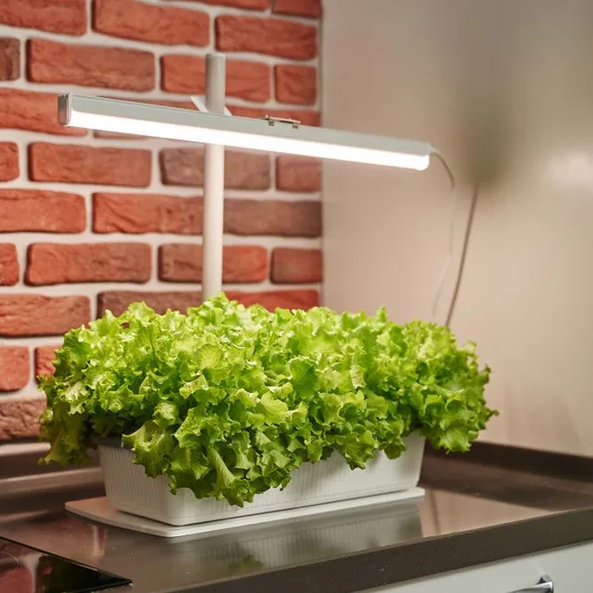 Светильник полного спектра для рассады, микрозелени, комнатных цветов, который обеспечивает растениям полноценный доступ синего и красного излучения и активизирует фотосинтез. Подходит для маленьких подоконников, простой в сборке, не требует особого ухода при эксплуатации. Свечение лампы приятно не только для рассады и плодов, но и для глаз человека, поэтому светильник можно использовать в качестве основного источника света. Угол светового потока не регулируется, однако светоэлемент может вращаться на 360 градусов. Осветительный прибор вращается вокруг своей оси, что удобно в условиях дефицита свободного пространства. Конструкция светильника обеспечивает удобную и быструю регулировку высоты светильника до 50 см – будет расти вместе с рассадой.
