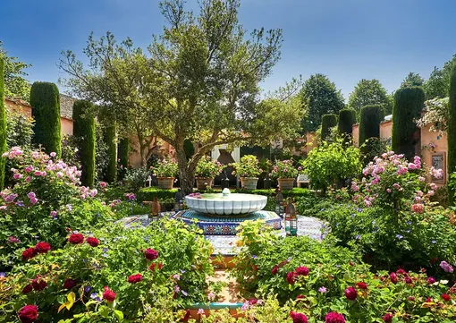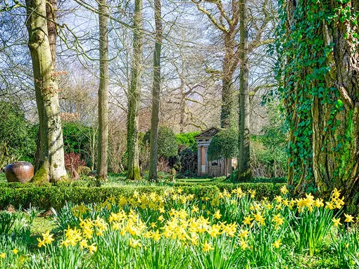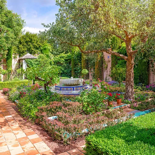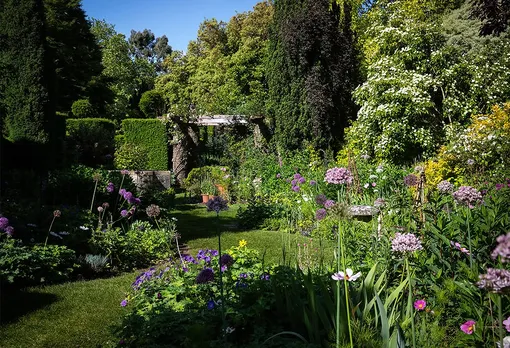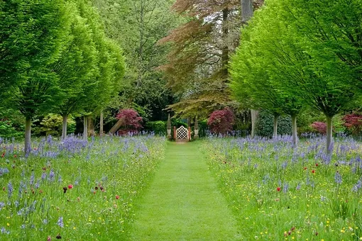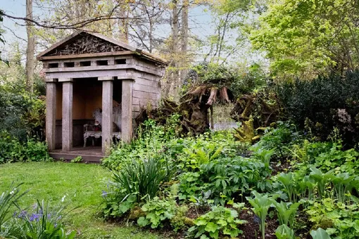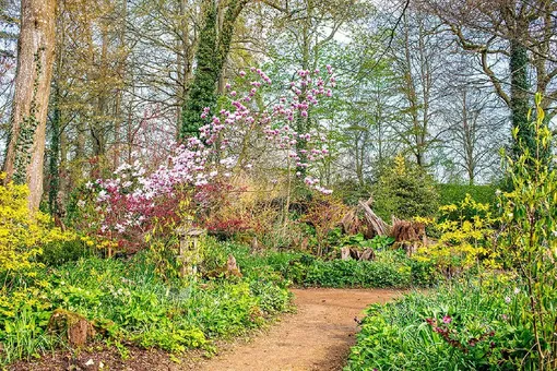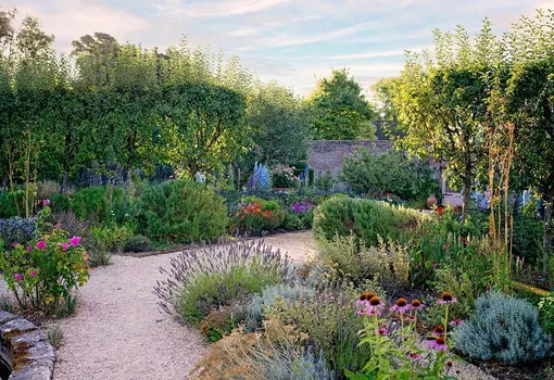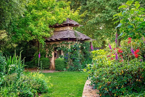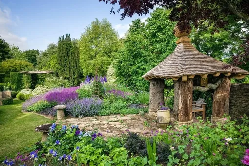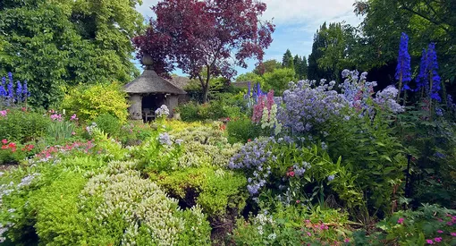 Коттеджный сад — это дань традиционным английским садам. Он представляет собой смесь деревьев, кустарников, травянистых и луковичных растений, обеспечивающих цветение в течение всего сезона. Изюминку саду добавляют подстриженные тисовые деревья.