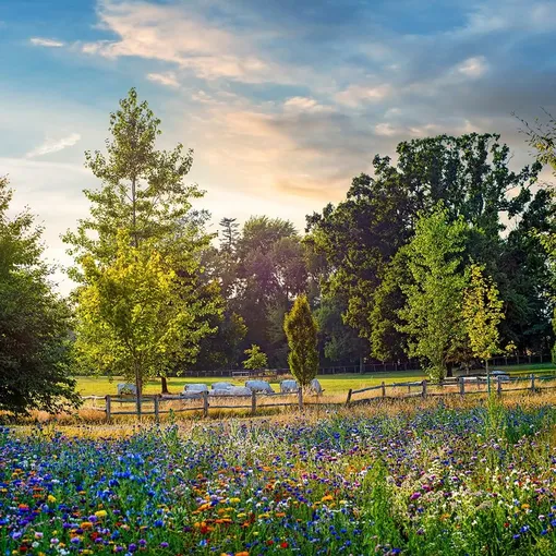 Луг с полевыми цветами простирается почти на два гектара. Здесь растет более 30 видов трав и цветов, которые перемежаются с дубами, каштанами, тополями и буками.