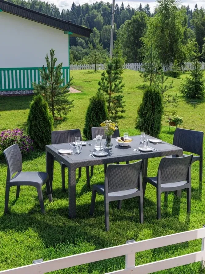 Садовая мебель из пластика — практичное и бюджетное решение для дачного участка или летней террасы. Она не боится дождя, легко переносит перепады температуры и не требует особого ухода. А благодаря своему лёгкому весу такие столы и стулья удобно передвигать с места на место — можно быстро переставить их в тень, на веранду или поближе к мангалу.