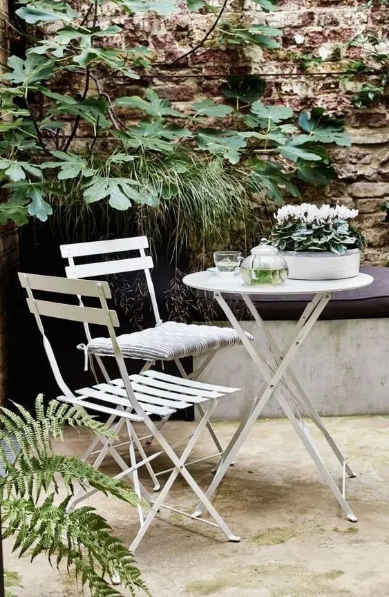 Для современных садов подойдут лаконичные металлические столы и стулья с минималистичным дизайном.
