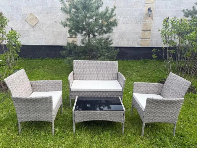Садовая мебель из искусственного ротанга — ещё один практичный вариант для дачи, террасы или зоны отдыха в саду. Она изготовлена на основе полиэтилена или других синтетических волокон, которые имитируют натуральный ротанг.