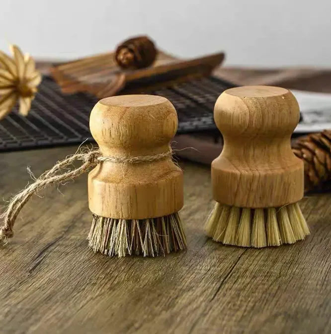 В этом наборе 3 круглых щетки с щетиной из сизали и пальмового волокна. Ручка из бамбука не пропитывается влагой, удобно держать в руке.