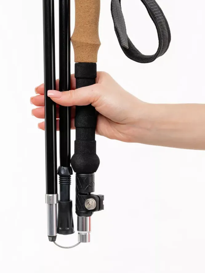 Палки на фото складные, – легкие и компактные. В комплекте 4 вида сменных наконечников (для грязи, песка, снега и асфальта) и хорошая эргономичная, нескользящая ручка из пробки. Кстати, один комплект палок можно разделить на двоих.