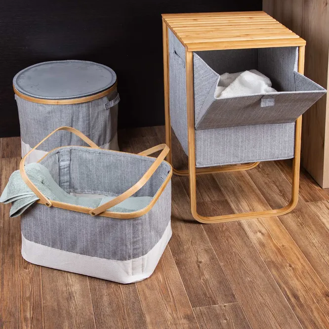 Корзина, она же, полка для белья с удобным боковым карманом, которая прекрасно подойдет для небольшой ванной комнаты. На полку всегда можно что-то поставить/положить, а при необходимости верхнюю часть снять и опустошить корзину. Сделать это легко одним движением.