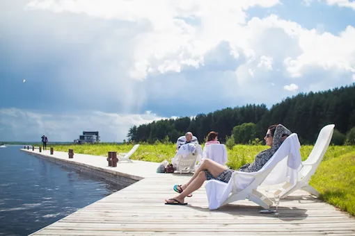 Тренажерный зал, 4 бани, открытый и закрытый бассейны, фито-бар с полезными напитками, панорамные окна и завораживающий вид на лес и реку!