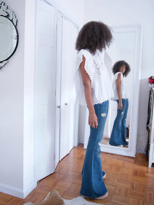 Так вы будете выглядеть стройнее и изящнее, чем если повернетесь к камере всем телом. Отличный вариант — съемка чуть снизу, тогда ваши ноги будут казаться длиннее.