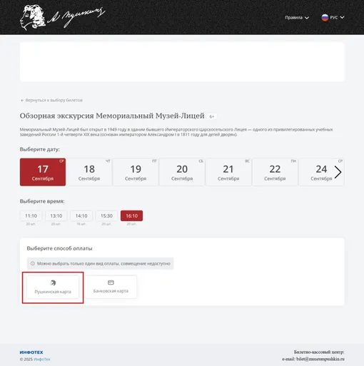 - Оформить заказ онлайн и выбрать оплату Пушкинской картой.