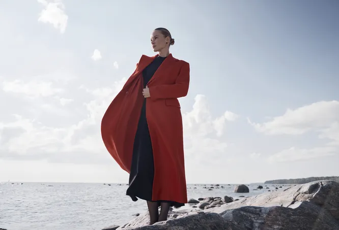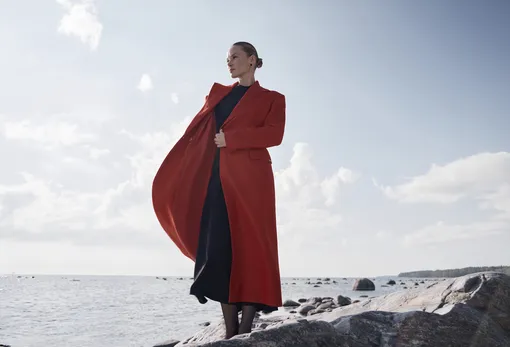 Благородные материалы — шерсть, экокожа, плотные костюмные ткани — создают баланс между комфортом и элегантностью. Пальто AMES обещает уют и изысканность, костюм из жакета DAPHNE и брюк HEDY — безупречную архитектуру силуэта, а бомбер ESSEN — современный характер.