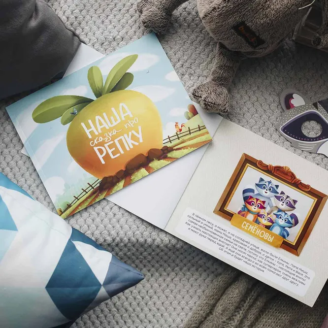 Хороших детских книг огромное количество, но эта отличается тем, что её героями становятся члены вашей семьи, а самым главным героем, конечно, ваша девочка. Всё, что нужно — это заполнить на сайте имена ваших близких, и книгу напечатают именно под вас. Представляете, как удивится ребёнок, когда прочтёт сказку со знакомыми ей именами.