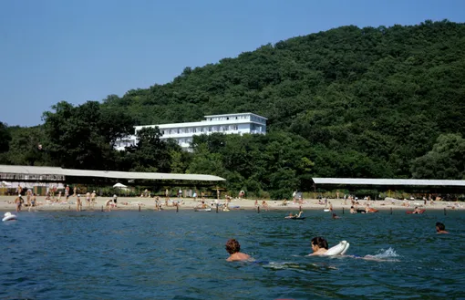 Пляж в поселке, как таковой, один — Центральный, песчано-галечный, длиной около километра. Вход в море пологий, глубина нарастает постепенно. В сезон здесь есть все для полноценного отдыха: кабинки для переодевания, зонтики, лежаки, всяческие детские и взрослые аттракционы. Ну и бонусом ко всем этим удовольствиям — множество отдыхающих, которые будут прижиматься к вашей подстилке и наступать вам на пятки.