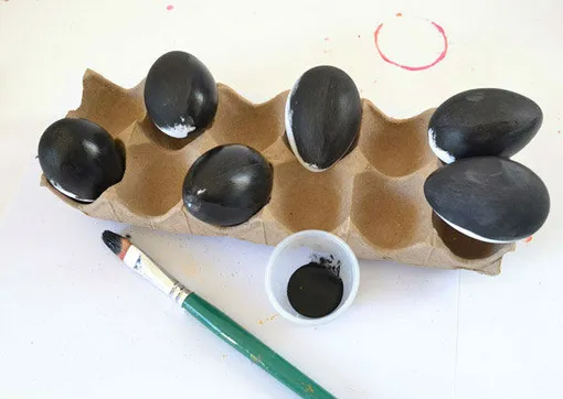 Закрасьте половину яйца черной краской. Дайте краске высохнуть.