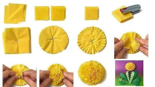 Второй: возьмите сложенную салфетку, сложите еще два раза, чтобы получился маленький квадратик. Вырежьте из него круг. По краям круга сделайте надрезы через каждые 0,5 см, аккуратно распушите гвоздику, разделив слои иголкой. Готовый цветочек пригодится для украшения открытки, только наклейте под него полоску зеленой бумаги. Если как следует распушить — можно и на проволоку наклеить.