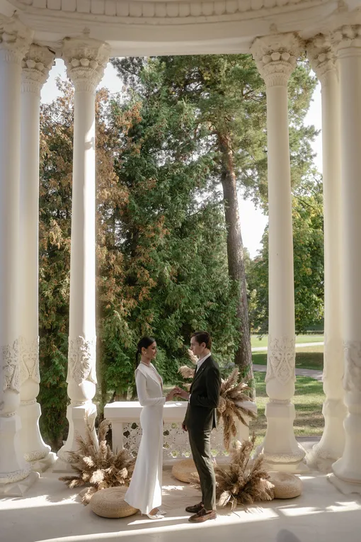 Уникальный архитектурный образ богемной виллы, задаваемый колоннадой вокруг летней галереи особняка, так красив, что для свадьбы не придется изготавливать никаких дополнительных дорогостоящих специальных декораций. Выездную регистрацию или торжественное произношение свадебной клятвы влюбленных можно организовать прямо на ступеньках дворца в окружении резной колоннады. И, поверьте, у вас получатся невероятно красивые фотографии.