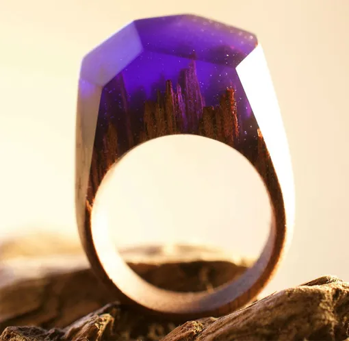 Эти потрясающие кольца выпускает и продает компания Secret Wood. Но, по секрету, их можно сделать и своими руками. Тем, кто способен такое повторить, объяснять «как» — не нужно.