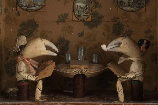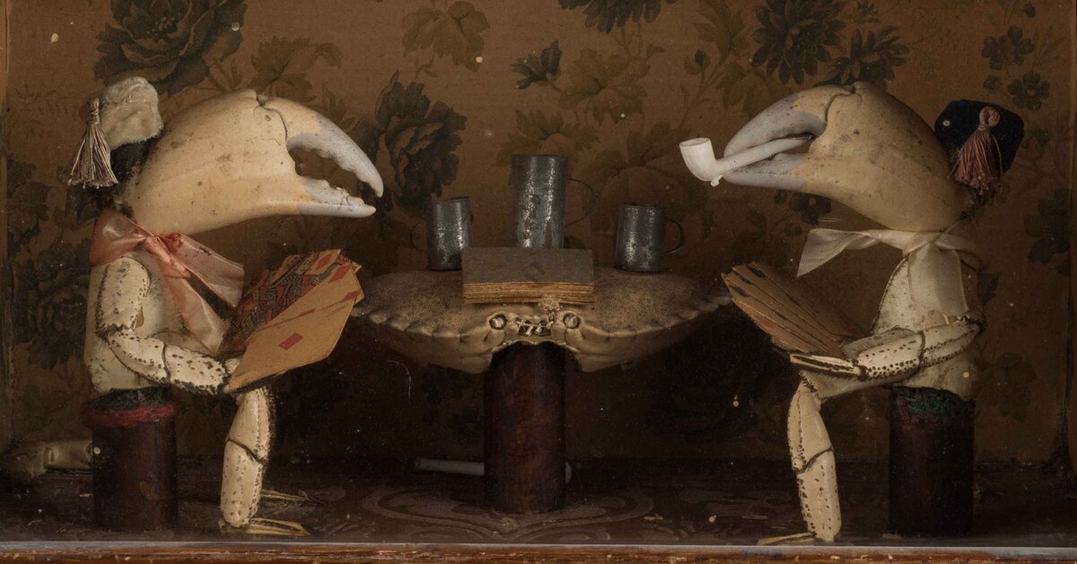 These are hand-made models of figures playing cards and of gold miners hauling gold nuggets to the surface. BUT the figures are made from crab’s legs and claws... Typical Victorians, they loved weird/creepy stuff. #CreepiestObject pic.twitter.com/A5NHiPGnVh