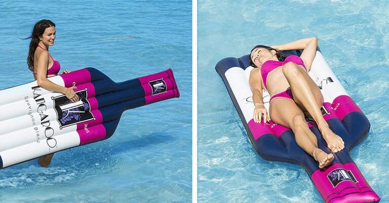 Летом-2018 производители матрасов предлагают нам загорать на бутылках вина, бокалах мартини и даже пивных стаканах. Намекают на отдых all inclusive?