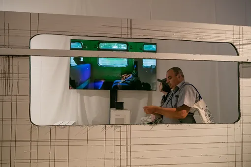 Посетители выставки могут сесть на скамейку и оказаться в пространстве, напоминающем вагон электрички. По мнению автора, именно в поездке люди расслабляются по-настоящему: «Ты лишаешься на миг всех забот и обязательств, жизнь за окном продолжается, движение не заканчивается, но внутри ты свободен и заземлён, наполнен чувством какой‑то безмятежности и спокойствия. Ты ничего не лишаешься в пути, момент совершенно не упущен, но от тебя не требуется совершать те или иные поступки».