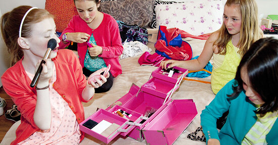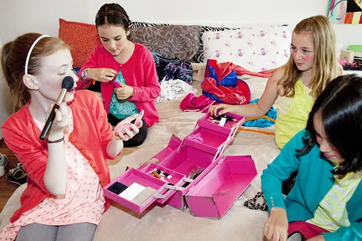 Красота, красота и еще раз красота! Если есть возможность, вызовите на праздник профессионального стилиста, который сделает девочкам укладки и макияж, научит пользоваться косметикой. А когда волосы и лица будут в порядке, предложите гостьям как можно больше бижутерии — пусть выберут кольца, бусы, кулоны, браслеты и вдоволь покрутятся перед зеркалом.